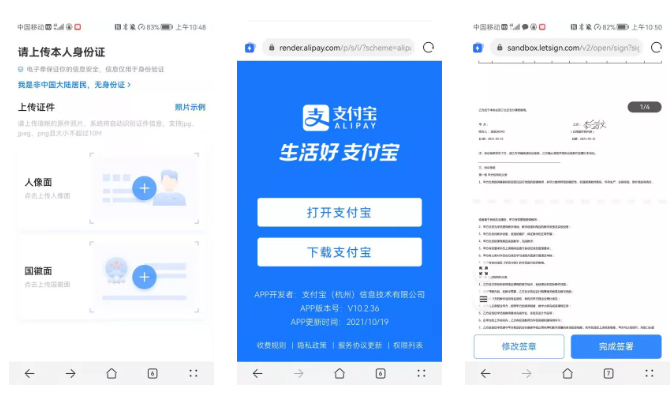 通过居民身份证认证、人脸识别、手机验证等方式实现对签约主体的身份确认,在身份得到有效确认后才能进行合同的签署。