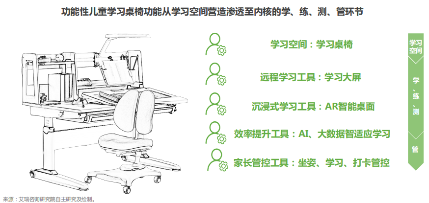 而远期看,儿童学习桌椅产品本身具备天然的升级整合优势,既可以成为学习空间,又能成为学习、管控载体,从家具行业向教育核心环节渗透。