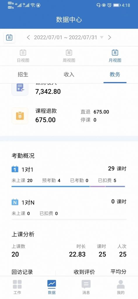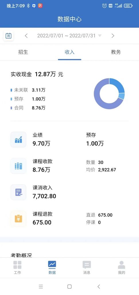 为此,学邦特地优化升级了BOSS校长APP数据中心???,从招生、收入、教务三大方面助力机构实现全员、全方位、全过程地降本提效。