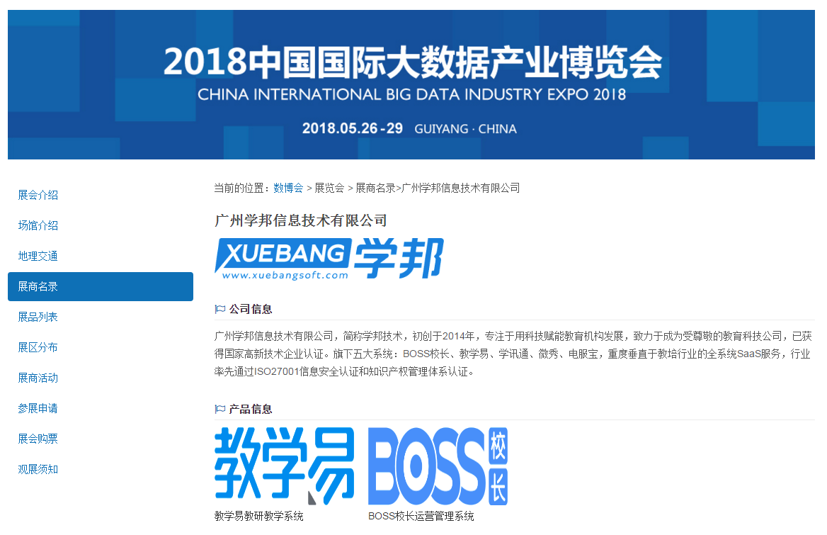 作为行业内首家亮相数博会的高新技术企业,学邦技术将与全球顶级大数据企业和大数据领军人物同台论道。深入交流互联网、人工智能、大数据等趋势对各大行业的趋势与影响!