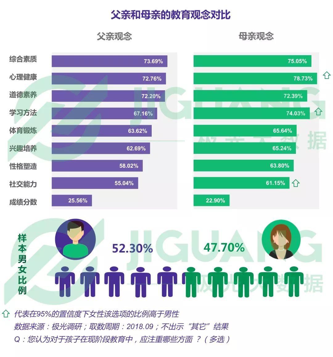 2、母亲们更注重对孩子心理健康、社交能力的培养。权威型父母更注重综合素质、学习方法教育。