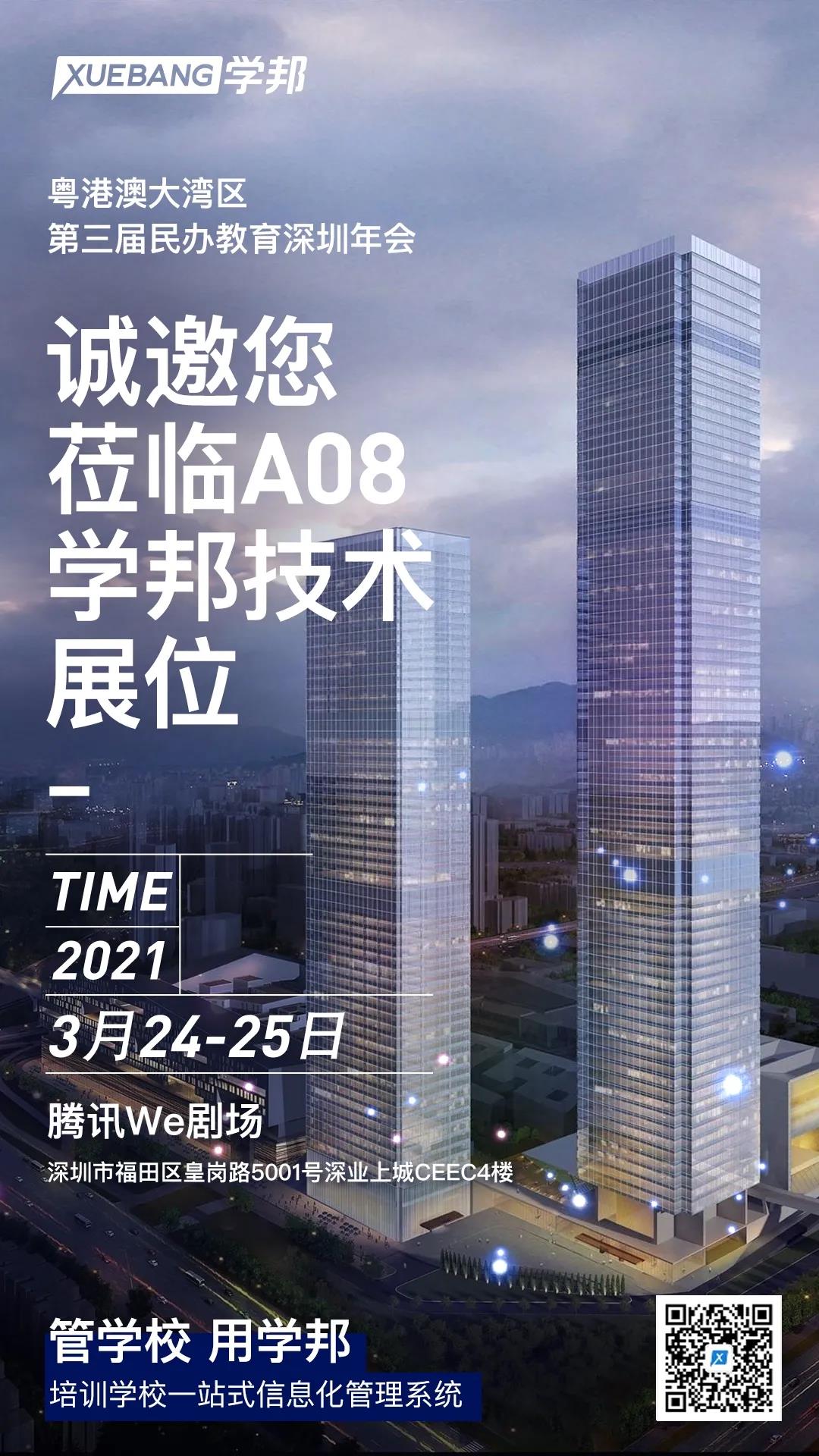 粤港澳大湾区第三届民办教育深圳年会,将于2021年3月24-25号在深圳腾讯WE剧场举行,本次大会以“后疫情时代教育培训行业的可持续发展与机遇”为主题。